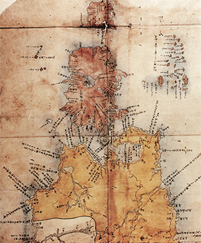 1644年(正保元年)幕府が「正保日本総図」を作成するために全国に命じて提出させた「正保御国絵図」には、クナシリ、エトホロなど現在の島名と推定できる多くの島々が描かれています。なお、これは1635年(寛永12年)松前藩士による蝦夷地の探検調査に基づくものと考えられています。