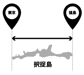km)くらい距離があり、東京都でいえば福島県との直線距離約200