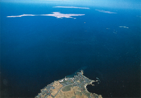 北海道根室半島の納沙布岬の沖合3.7kmから北東方に点在する、貝殻島、水晶島、秋勇留島、勇留島、志発島、多楽島などの島々からなる群島で、面積は95㎢です。島々は笹が茂ったゆるやかな丘陵地で、樹木はほとんどありません。かつては多くの日本人が居住していましたが、現在住民はおらず、ロシアの「警備隊」がいるのみです。周辺は豊かな漁場として知られています。