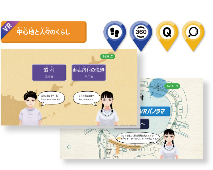 ※北方四島VR-E(教育版)では、物語に沿って体験できるストーリーモードと各コンテンツを自由に選択できる自由探索モードの両方をご提供しています。